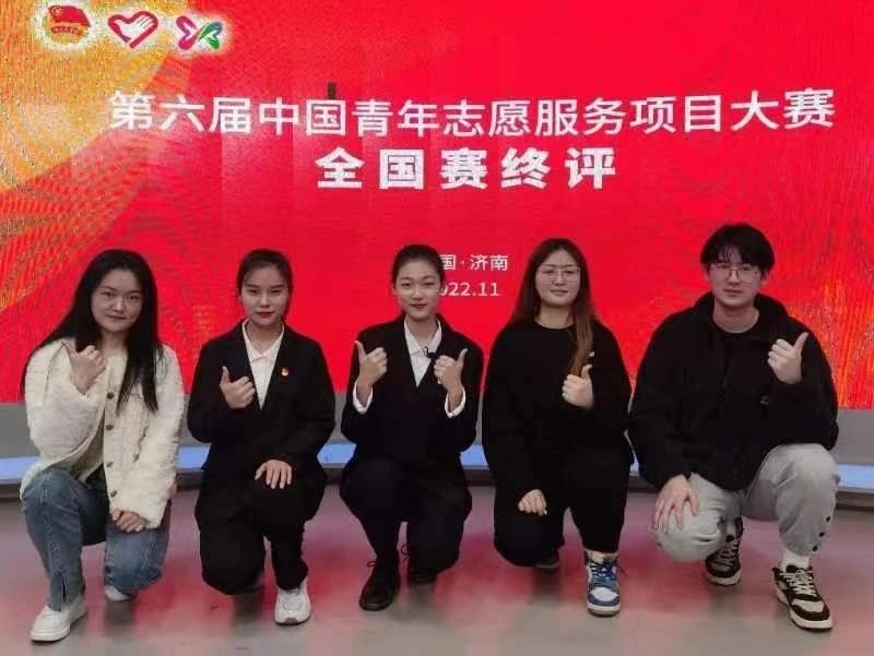 谈起参与的众多比赛,胡霄缓缓向我们讲述起她印象中最深刻的一场比赛:2022年胡霄作为队长带领团队参加了第六届中国青年志愿服务项目大赛,整场比赛一直从八月持续到十一月。然而受疫情影响,在大部分的时间里,她与团队成员都是通过线上会议进行讨论,常常腾讯会议一开,就是几个小时起步。即使成员们身处各地,在商讨时也会出现你争我辩的激烈火花。在无数条的微信消息中,是成员之间为彼此加油打气的有爱互动,在一次次的头脑风暴中,是整个团队对大赛筹备的全力以赴。跨过遥远距离,越过诸多困难,不同想法的碰撞加上团结一致的心,让胡霄与成员们一起勇往直前走到了全国总决赛。