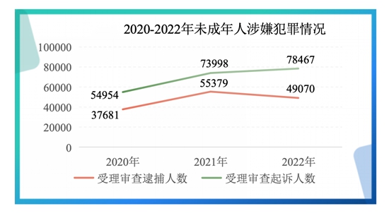 那艳芳介绍说,当前未成年人涉嫌帮助信息网络犯罪活动罪明显上升。2020年至2022年,检察机关审结(含起诉、不起诉)未成年人涉嫌帮助信息网络犯罪活动罪人数分别为236人、3001人、5474人,2022年同比上升82.4%。