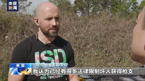 3D打印枪制造商 乔丹:我认为已经有很多法律限制坏人获得枪支,如果一个人打印枪支只是为了自己用,我觉得没有任何问题。