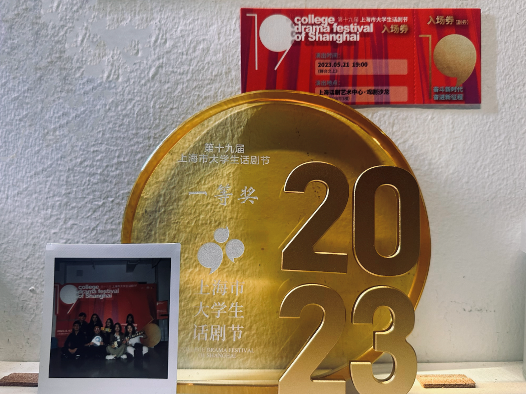 上海财经大学学生话剧团原创作品《舞台之上》,在本届大话节取得了长剧组一等奖的优秀成绩!朱丹(饰纪录)、柏子杰(饰老陶)两位演员收获了优秀表演个人奖,为话剧团本次的大话节之旅更添上了浓墨重彩的一笔。