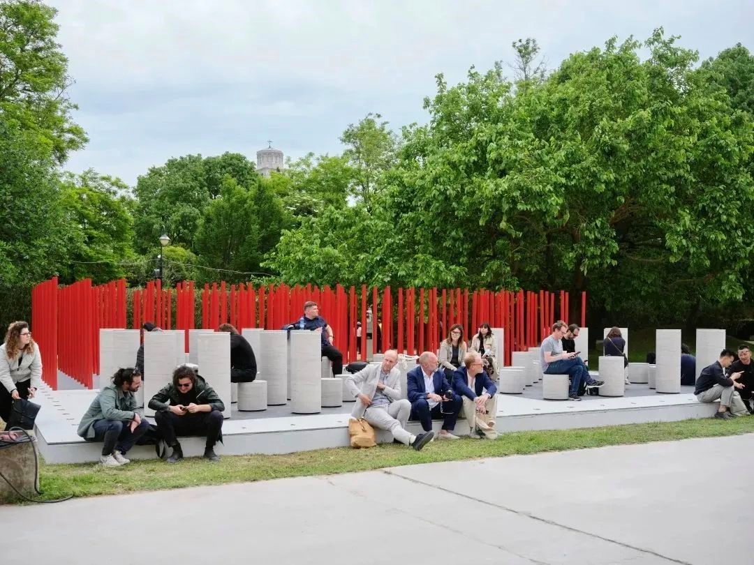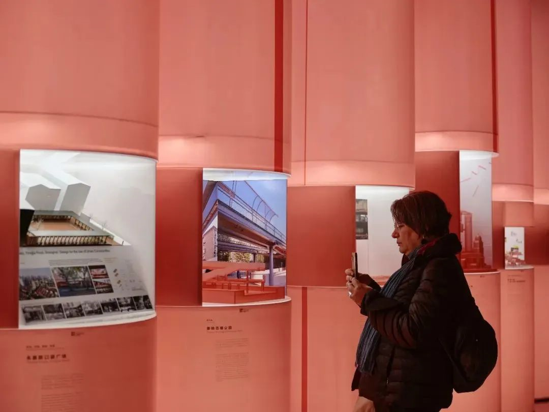 在策展团队看来,变化为常态,同时,变化又兼具文化传统的恒定性,是一种“不变中的变化”。 中国国家馆在策展中映射近40年来变化中的中国人居环境,50余幅巨大的“卷轴”构成柱廊,让人恍如置身森森楼宇。参观者在“观画”“展读”“凝视”和“漫步”中寻求应对现实的答案和对未来的想象。