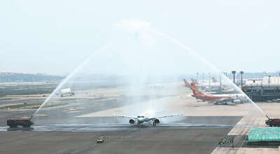 5月28日12时31分,经过1小时59分钟飞行,由C919大型客机执飞的东方航空MU9191航班平稳降落在北京首都国际机场,穿过象征民航最高礼仪的“水门”。