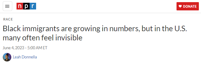 中国日报网6月6日电 据美国全国公共广播电台(NPR)4日报道,目前,美国各地非洲裔移民人数正在大幅增长,20%的美国非裔不是移民就是移民的后代。但他们很少成为围绕移民政策的美国全国性讨论的中心,因此被称为 "隐形移民"。即使在很小的相互交流中,许多黑人移民也会谈论他们的文化、身份和历史有时被忽视的方式——甚至更糟。