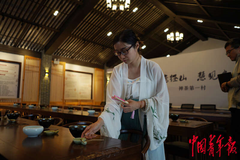 中国青年报客户端杭州6月8日电(中青报·中青网记者 王林 李峥苨 见习记者 贾骥业)“我们这里是‘浙江省十大名茶’之一径山茶的核心原产地,径山茶现在也成了我们老百姓主要的收入来源。”说起家乡的茶叶,浙江省杭州市余杭区径山村党支部书记俞荣华头头是道。作为径山茶炒制技艺非遗传承人,他和村民正在探索如何念好茶文旅融合发展的新“茶经”。