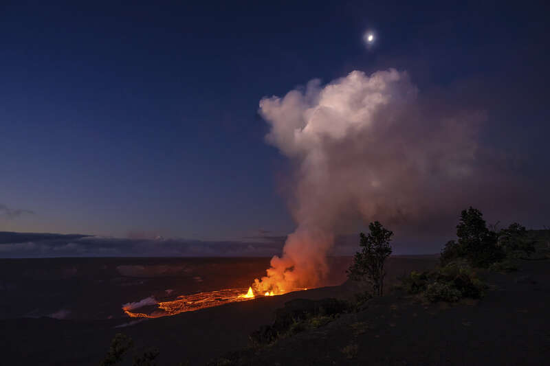 6月7日,正在喷发的美国夏威夷基拉韦火山。在上轮喷发停歇3个月后,美国夏威夷基拉韦火山7日开始新一轮喷发,被地质监测部门形容为“势头强劲”。新华社/美联