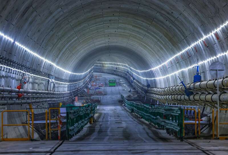 6月8日,深圳妈湾跨海通道已完成管片拼装的隧道。当日,中铁隧道局承建的深圳首条跨海通道——妈湾跨海通道右线实现贯通。妈湾跨海通道工程线路全长8.05公里,是连接深圳南山区前海片区和宝安区的海底地下工程。此次贯通的妈湾跨海通道右线盾构全长2063米,是整条线路的控制性工程。新华社发(李小勇/摄)