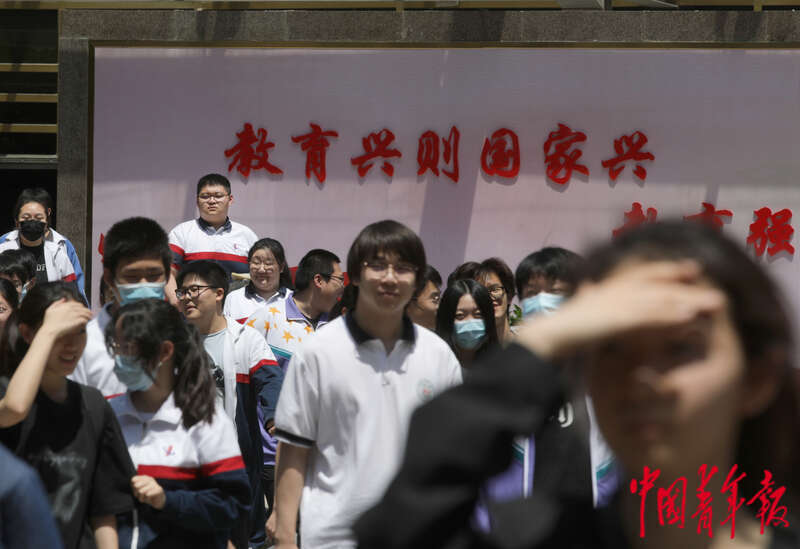 6月7日,位于北京市朝阳区的一处高考考点外,考生们结束第一门语文科目的考试后,走出考场。当日,2023年全国高考正式开启。今年高考是新冠“乙类乙管”后的首次大规模国家教育考试,北京市5.8万余名考生走进考场。据教育部数据,今年全国高考报名人数1291万人,比去年增加98万人,再创历史新高。中青报·中青网记者 陈剑/摄