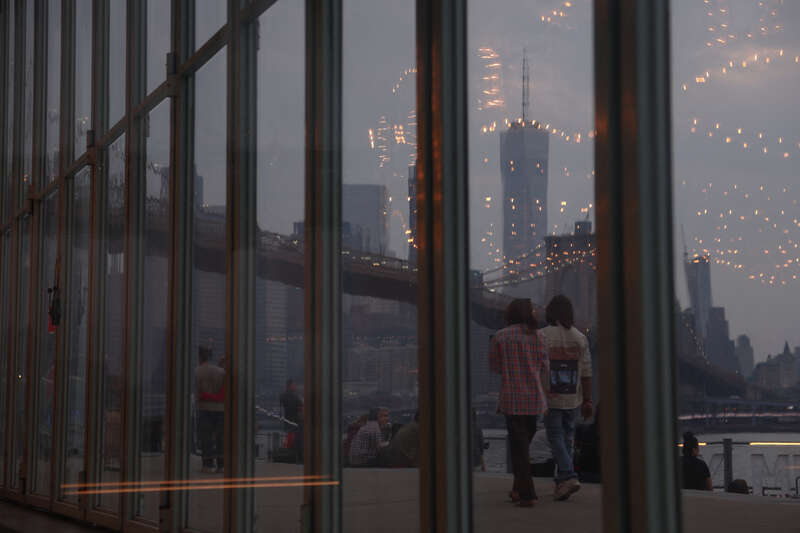 6月8日,在美国纽约布鲁克林区,烟霾笼罩下的纽约曼哈顿天际线。由于加拿大多地森林野火产生的大量烟霾南移,美国纽约市空气近日出现严重污染。新华社/路透