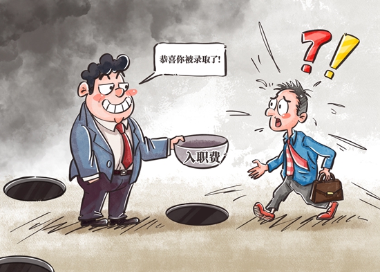 近日,有媒体报道,一应聘者在某知名网站投递简历求职时,被要求先交“保险费”和押金,警方介入后才拿到退款。人社部门提醒,要小心“求职陷阱”,避开套路和骗局。漫画:程璨