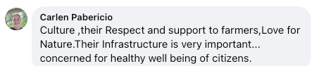 △网友留言:(中国)文化尊重和支持农民,热爱自然。他们重视基础设施并关注公民的健康福祉。