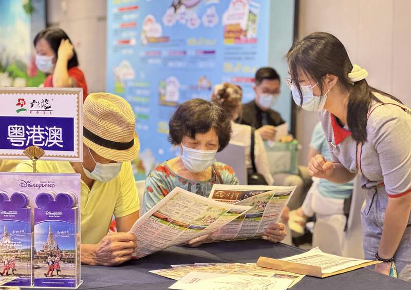 工作人员正给市民介绍旅游攻略详情。庞思齐/摄