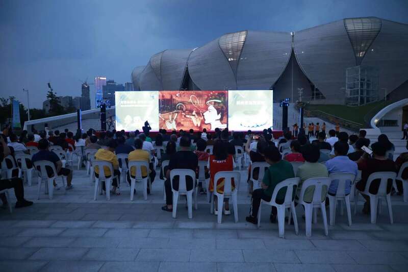 “迎亚运盛会 赴光影之约”浙江省百部体育电影展映活动启动仪式在亚运会主会场“大莲花”前广场举行。活动主办方供图