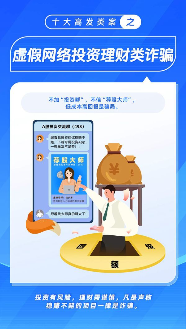 记者从公安部获悉:当前,电信网络诈骗犯罪形势依然严峻,刷单返利、虚假网络投资理财、虚假网络贷款、冒充电商物流客服、冒充公检法、虚假征信等10种常见诈骗类型发案占比近80%,其中刷单返利类诈骗发案率最高,占发案的三分之一左右,虚假网络投资理财类诈骗造成损失的金额最大,占造成损失金额的三分之一左右。