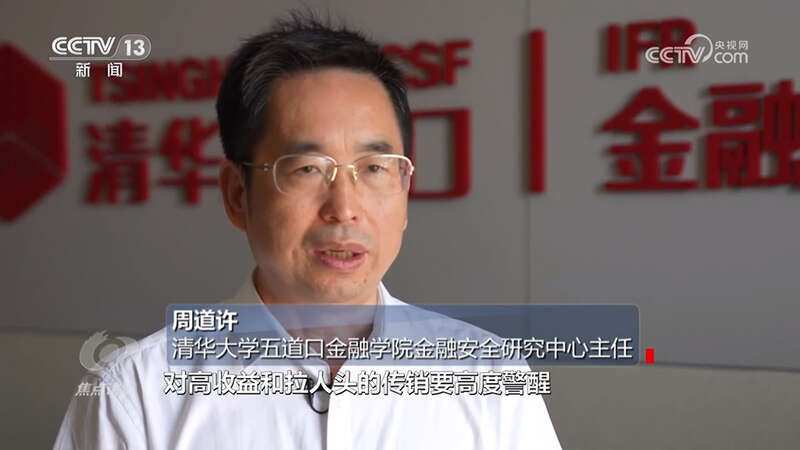 清华大学五道口金融学院金融安全研究中心主任周道许:“有两个明显的特征,第一个就是高回报、高收益率,诱使人投资他的项目,一般会采取传销拉人头的方式来推销他的产品。对高收益和拉人头的传销要高度警醒,同时要借助专业的力量,头脑一发热钱就砸进去了,后悔就太晚了。”