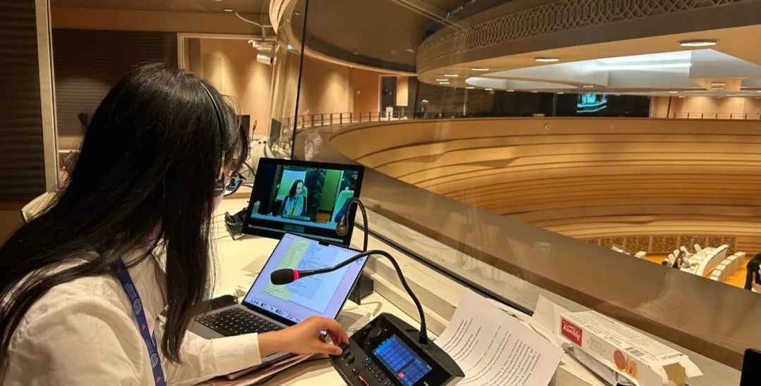 为了圆满完成此次同传任务,在飞往日内瓦之前,她做了充分的准备:提前学习会议已经发布的总干事报告和委员会等报告,为现场的翻译工作做好了知识层面的准备;观看往年的会议视频,熟悉不同国家发言人的语速和口音特点,并进行了相关的口译练习。