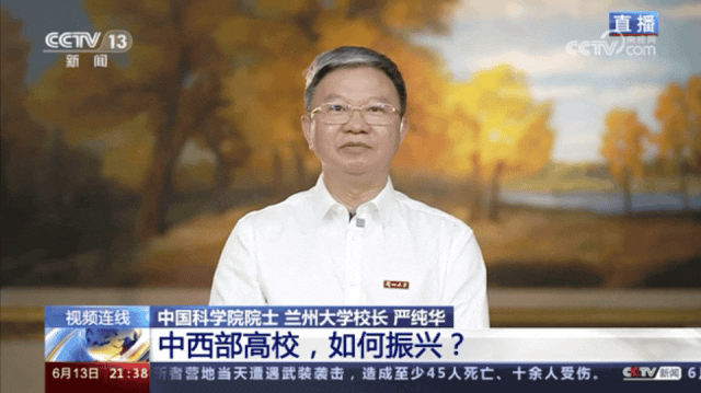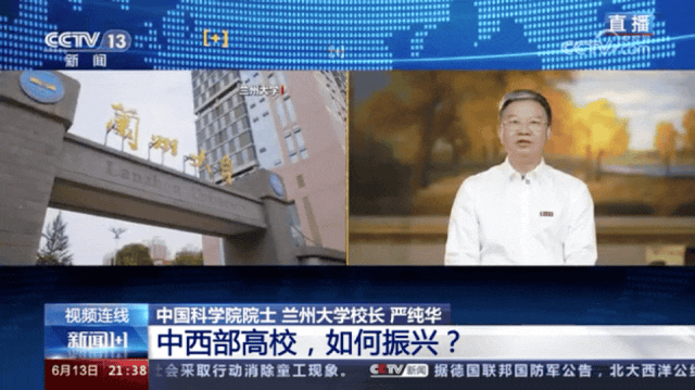 6月13日晚《新闻1+1》栏目,白岩松对话中国科学院院士、兰州大学校长严纯华,共同关注:西部高校,如何振兴?