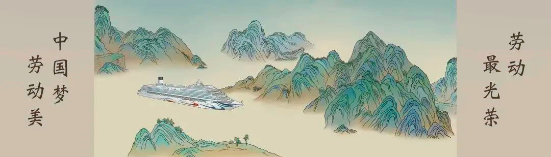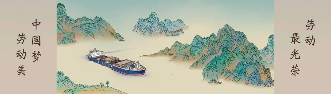 作品在浩荡江水、广阔天际间既保留了中国传统绘画写意的美感,也展现了中国大国重器写实之壮观,以艺术化的方式再现了劳动者奋斗的场景,更彰显了他们拼搏的精神。
