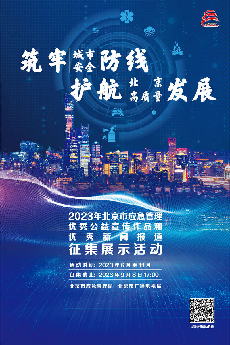 中国青年报客户端讯(中青报·中青网记者 蒋肖斌)6月19日,由北京市应急管理局、北京市广播电视局联合主办的“2023年北京市应急管理优秀公益宣传作品和优秀新闻报道征集展示活动”,面向全社会开展征集,截止时间为9月8日17:00。