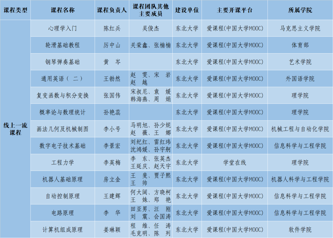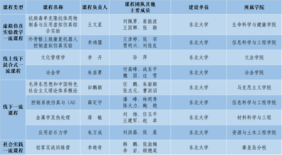东北大学22门课程获批第二批国家级一流本科课程。其中线上一流课程13门,虚拟仿真实验教学一流课程2门,线下一流课程4门,线上线下混合式一流课程2门,社会实践一流课程1门,覆盖教育部五大类“金课”全部类型。目前,学校共获批国家级一流本科课程61门,辽宁省一流本科课程345门。在中国大学MOOC、学堂在线和国家高等教育智慧教育平台共计上线课程169门,上线国家智慧教育课程平台144门;开设暑期国际课程259门次;立项资助建设思政课程、前沿性课程、交叉型课程、融合型课程超过200门。