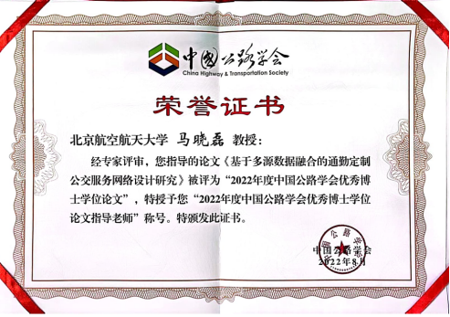 马晓磊先后承担多项本科或研究生教改项目,指导学生获得中国公路学会优秀博士论文、交通运输工程领域全国优秀博士论文、北航校级优秀硕士论文等学生培养奖励,指导学生获首届IET社会影响力奖、中国研究生“双碳”创新与创意大赛二等奖等多项科创大赛奖励,是北京市优秀教学团队核心成员。