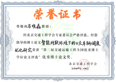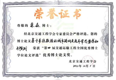指导学生论文获交通运输工程全国优秀博士学位论文