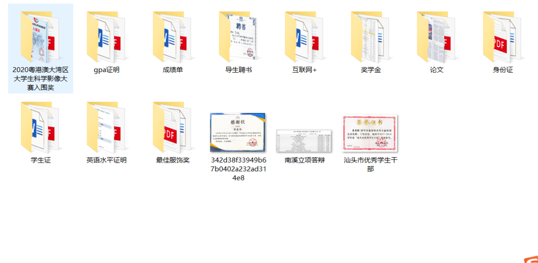 (李思彤放保研申请材料的文件夹)
