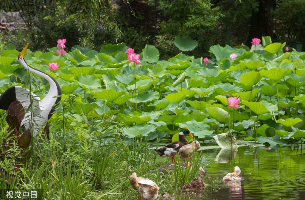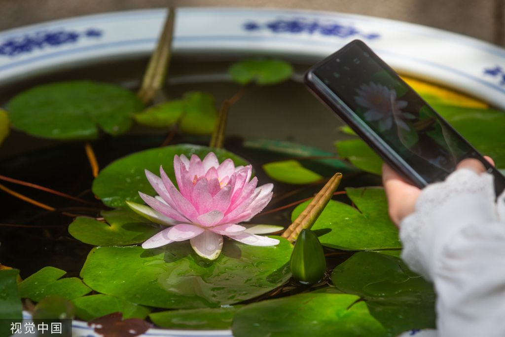 2023年6月20日,上海,第10届上海荷花睡莲6月22日开幕,为期两个月。