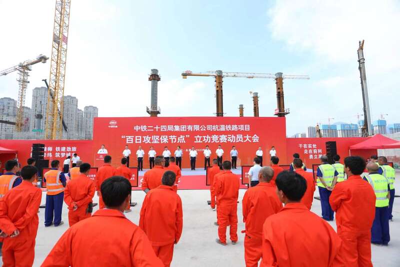 杭温铁路站前6标举办“百日攻坚保节点”立功竞赛动员大会。中铁二十四局集团有限公司供图