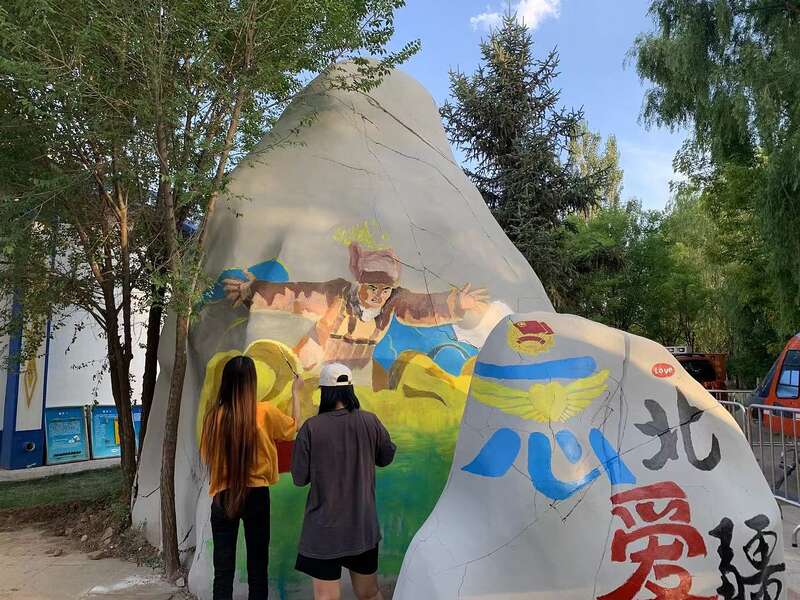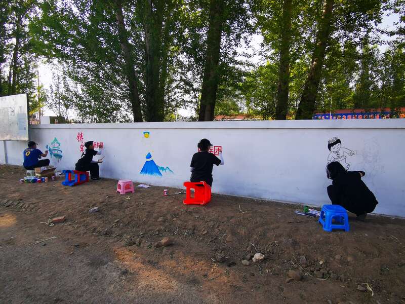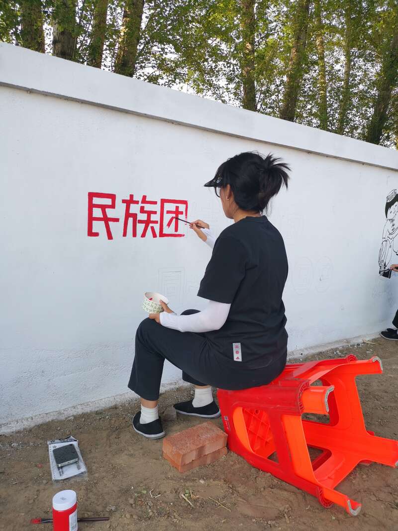 2023年6月24日,呼和浩特民族学院美术学院志愿服务队在内蒙古通辽市库伦旗先进苏木开展“主题文化墙绘”志愿活动。