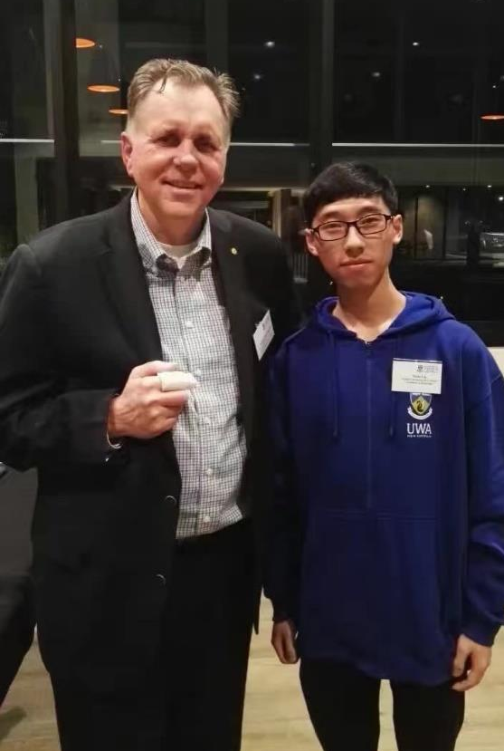 在国科大,每个人都有机会出国访学。在大四上学期,我有幸前往澳大利亚第四大城市珀斯(Perth)的西澳大利亚大学(UWA)交流了半年。西澳大学坐落于珀斯市的西南片区,是“澳洲八名校”之一。学校为我们举办了盛大的欢迎晚宴,特别邀请了西澳大学校友、2005年诺贝尔生理或医学奖得主巴里·马歇尔(Barry J. Marshall)教授与我们共进晚餐,并给我们作学术分享报告。