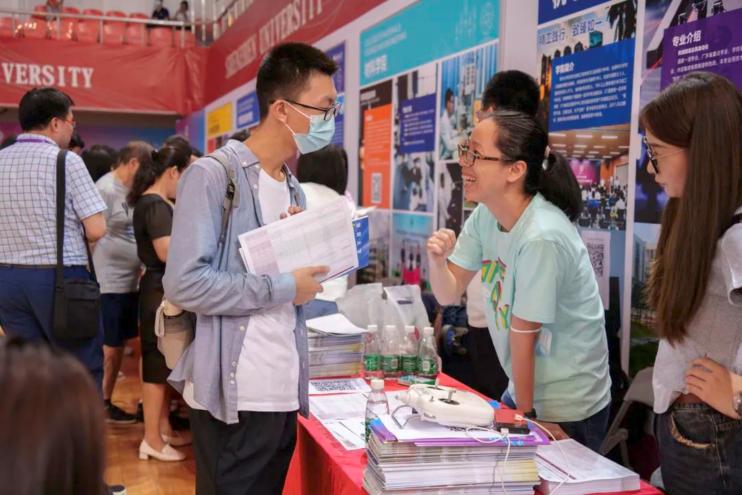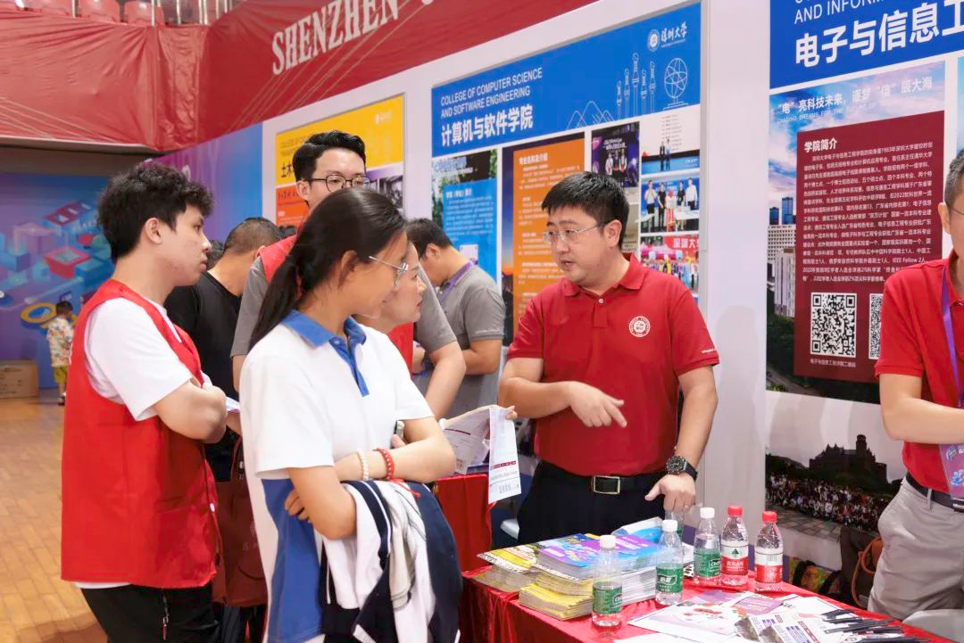 “明天出成绩,我十分希望能够报考深大!”毕业于深大附中的应届生谢同学兴奋地说,“这次校园开放日让我更了解深大的环境,让我更加坚定了自己内心的选择。”来自东莞的王先生表示,校园开放日令他更方便、直观和全面地了解深大,学校无论师资还是环境都在深圳数一数二,“孩子想要考取的是‘人工智能’相关专业,如果成绩达标,我们十分乐意报考深大!”还有一些非应届生和家长也提前来深大了解情况。邓女士的孩子读高二,把深大当作高考目标,但是对未来的专业选择不太懂,因此看到校园开放日就立马报名参加了。邓女士表示,带着孩子来校园里咨询、参观、体验,让孩子更了解深大、了解自己感兴趣的专业,能让孩子学习更有干劲,争取明年考上深大。