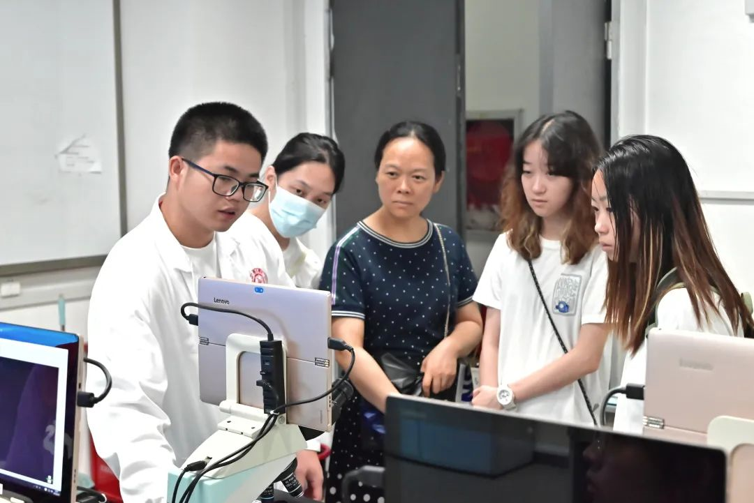 今年的校园开放日,各学院的实验室和特色资源向广大考生和家长开放和展示。其中,深圳大学传媒国家级实验教学示范中心、教育网络工程——人工智能教育实验室、创意风暴与媒介融合实验室、服装综合实验室等受到文史艺术类考生和家长关注;理工类考生则对BIM与智慧建造研究中心、岩土及地下工程科研实验室、机器人俱乐部宣讲及战车展示兴趣十足。在粤海校区南区,中国国际“互联网+”大学生创新创业大赛项目展示吸引了众多考生和家长,他们表示,“创新创业”是深大的育人特色,也是他们的关注重点。在丽湖校区医学院A7栋楼中,许多有志于医学研究的高考毕业生在手术室、ICU、腔镜室尝试亲自操作器械,连连发出惊叹。毕业于深圳中学的林同学表示,来深大医学院学习临床医学专业一直是他的目标,亲身感受手术操作让他更坚定了自己的选择。