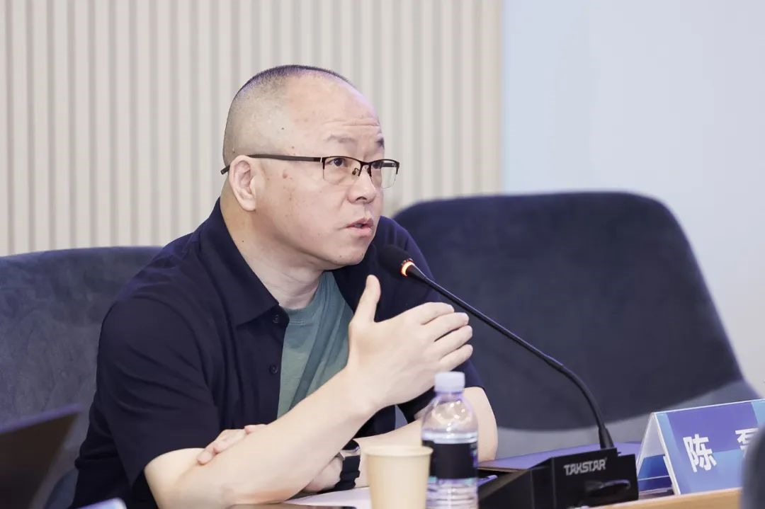 陈磊汇报了视觉传达艺术设计系教学情况,他表示要促进课程内容由“技”到“道”的提升,促使学生关注媒介环境发展的新领域,关注学科前沿的思考,关注社会发展的重要课题;他还预估了目前可被现有人工智能技术取代的工作技能,强调视觉传达设计专业培养目标、教学特色定位、课程结构设置都亟待思考并提出有效举措。