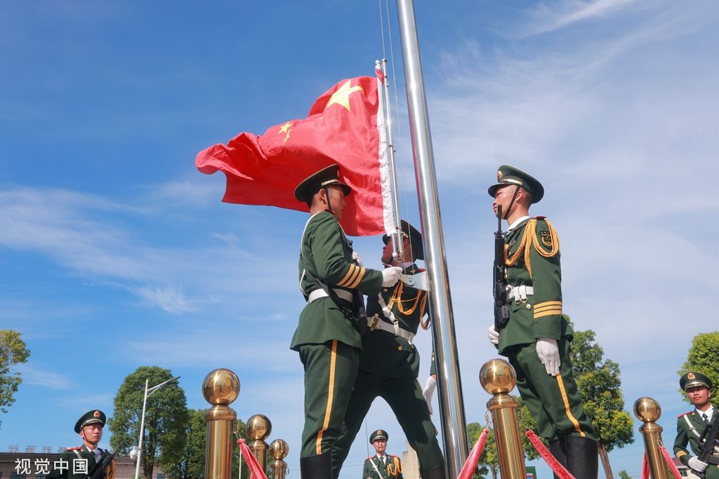 2023年6月28日,江西鹰潭,武警鹰潭支队官兵组织升旗仪式。