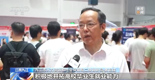 九江市人力资源和社会保障局二级调研员 黄起成:积极地开拓高校毕业生就业能力,把企业需要岗位和大学生的岗位匹配,更好地融洽对接。