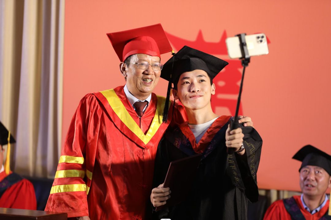 自邹建华担任该校校长以来,他已连续7年为每一位参加典礼的毕业生颁发毕业证书并合影留念。