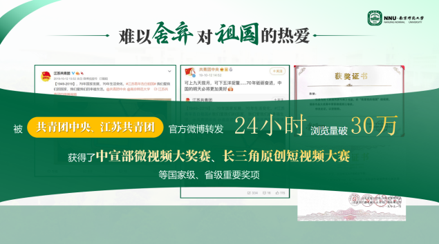 他带领视频团队从学校出发,讲述新中国成立70周年之际,两代南师人看到的中国“衣食住行学”方面所发生的翻天覆地变化。在新视频被广泛关注后,陈健和其视频团队逐渐认识到,这样喜闻乐见的形式,能够更深入帮助人们提高思想觉悟,有效将思政教育落实到生活中。