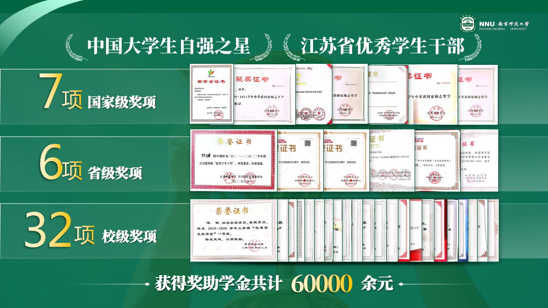 他筑梦报国,服务国家战略。陈健以优异的学习成绩与较高的综合测评获得了保研资格。在面对浙大、南大、北师大等国内顶尖学府的offer时,他遵从内心理想,坚定选择了北京外国语大学的国际组织学院。希望未来能够成为一名国际组织工作者,提高中国在国际组织中的话语权,更好地发出中国之声。