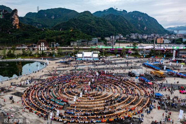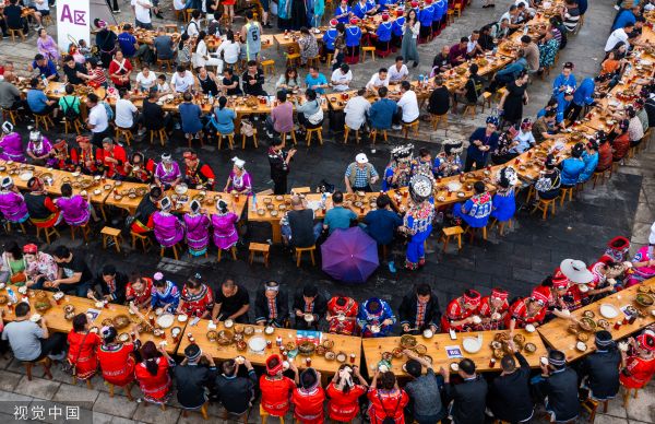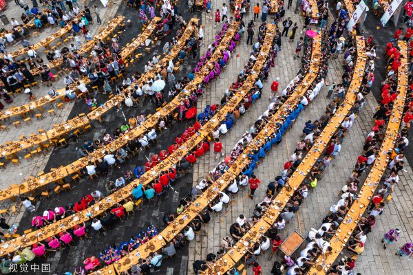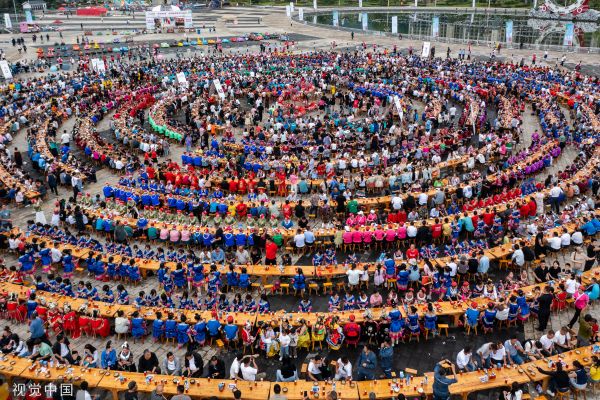2023年6月22日,贵州黔东南,端午节施秉万人长桌宴。