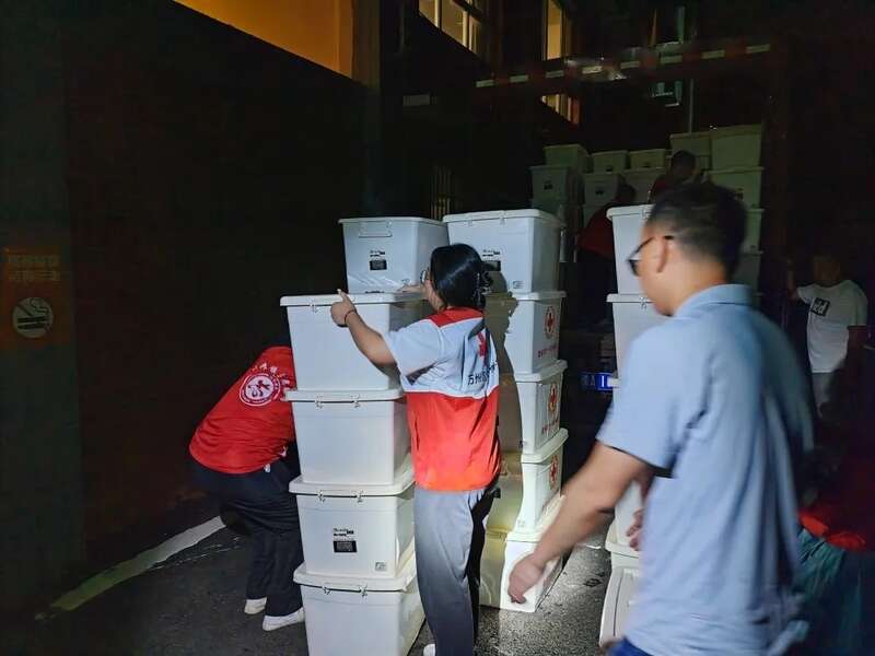 红十字会志愿者准备物资发放工作。重庆市红十字会供图