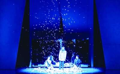 于上海戏剧学院实验剧场上演的《培尔·金特》,结束在展现培尔·金特足迹所到之处的地图破碎了,碎片如雪花在舞台的天与地之间飘飘洒洒,那场景,简直是《索尔维格之歌》的最佳MV。