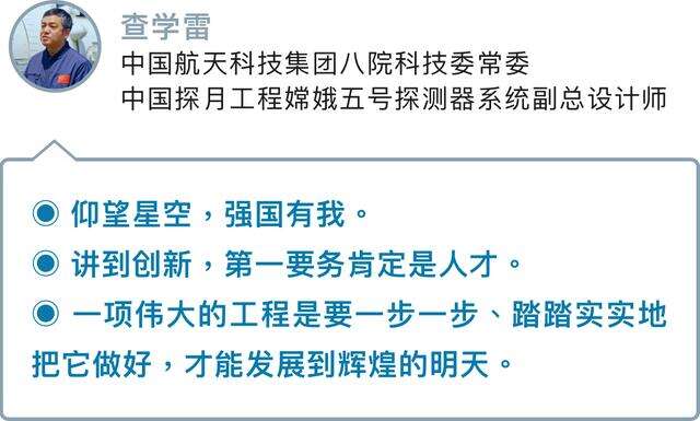“航天事业的高速发展,取得的许多辉煌成就,离不开自主研发。我国航天技术尤其是在深空探测领域,有很多原创性的科研成果。”查学雷认为,要加快科技自立自强,集聚力量进行原创性引领性科技攻关,坚决打赢关键核心技术攻坚战。“我们已经处于世界上航天探索的第一梯队,很多原创性科技成果的取得,要靠我们自己去努力。既要用已有的科技成果鼓舞热情、提振信心,又要从砥砺奋进中汲取力量、持续奋斗,咬定青山不放松、千磨万击还坚劲、宝剑锋从磨砺出,这是我们这代人义不容辞的责任,更是广大科技工作者的担当和光荣。”