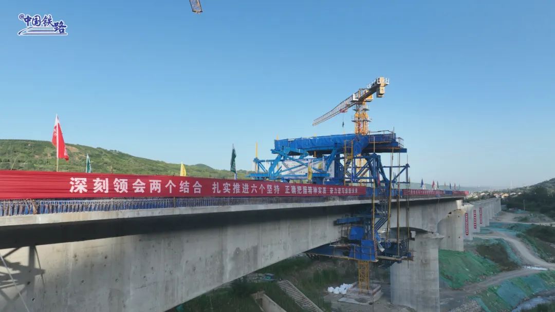 西十高铁岱峪河2号特大桥全长约2703米,此次浇筑的连续梁全长177.5米,桥梁距河面19米,高空作业难度大。