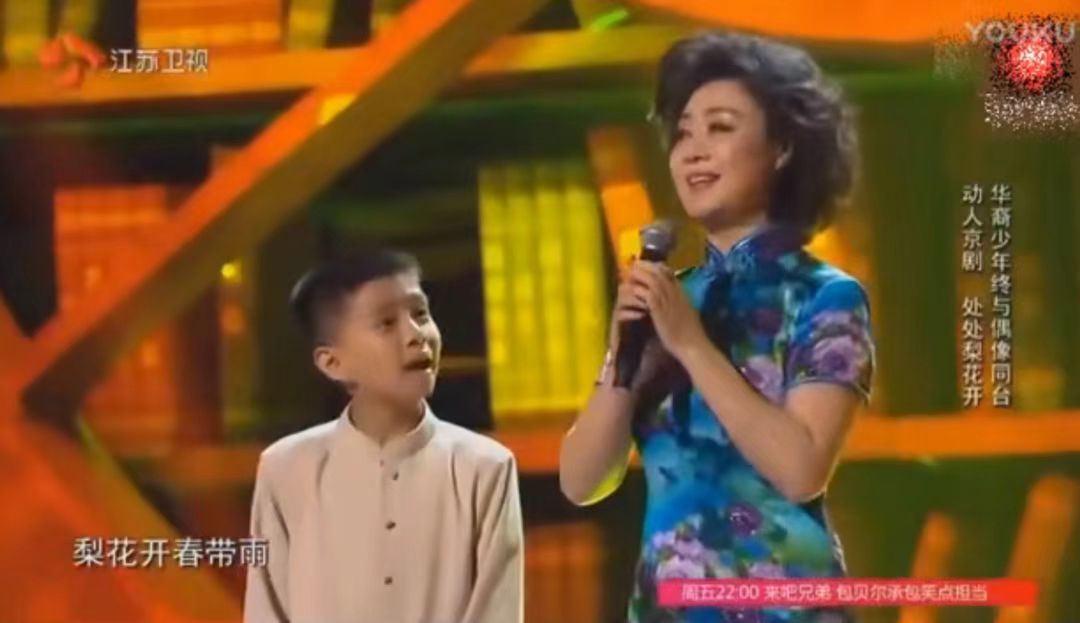 这段李胜素、王泓翔合唱《梨花颂》的片段来源于江苏卫视的音乐类综艺节目《歌声的翅膀》,时年10岁的王泓翔家住加拿大温哥华,是一名华裔。李胜素是中国著名京剧表演艺术家、国家一级演员、国家京剧院一团团长,第十三届中国戏剧梅花奖得主,师承齐兰秋、刘元彤等京剧名家,也是梅葆玖先生的入室弟子,他们是怎样相识的?也要从这档节目说起。