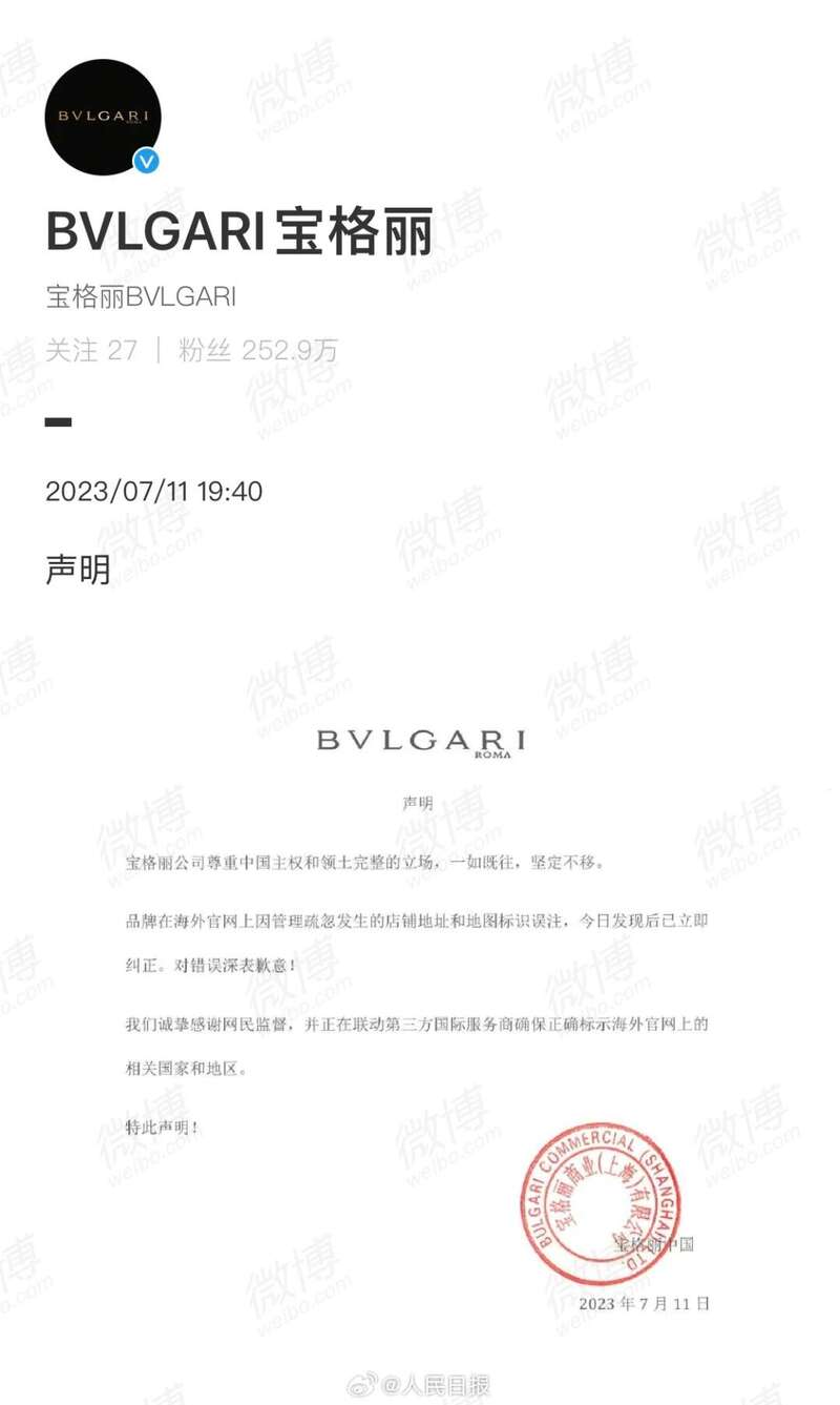 刚刚,宝格丽在其官方微博发表声明,为被曝光其海外官网将“中国”与“台湾”并列一事致歉。
