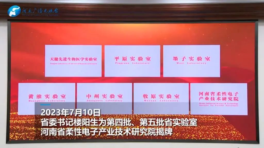 7月10日,第四批、第五批省实验室和河南省柔性电子产业技术研究院集中揭牌仪式在郑州举行,省委书记楼阳生出席并讲话,省长王凯出席。河南大学党委副书记、副校长谭贞参加揭牌仪式。