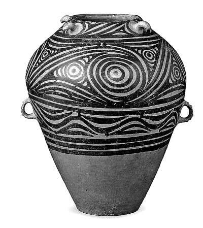 旋涡纹彩陶罐,首次发现于甘肃马家窑遗址。现藏中国国家博物馆。