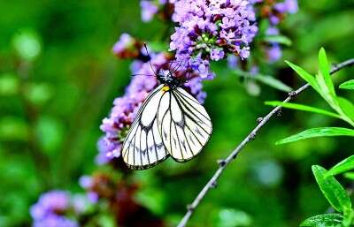 阳光洒下来了,这条栈道两旁,白衣翩翩,空中飞舞着的全是“四姑娘”,而且每一只都新鲜完整。它们在醉鱼草花上停,在大蓟花上停,四面八方都是,幸福的我一直拍到手软,才开始寻找别的蝴蝶。