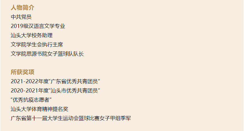 汕头大学校务助理、文学院学生会执行主席、文学院思源书院女子篮球队队长、“志愿爱好者”……能够顶着诸多身份一路保持这样的成绩,于蔡燕而言,这是“集体”的土壤孕育出的、饱含“热爱”的果子。