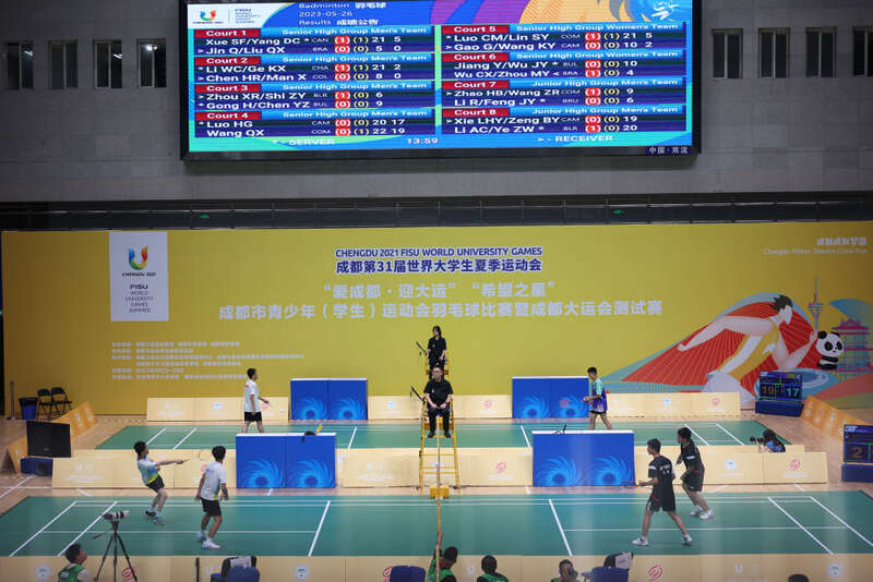 国家羽毛球四川体育训练基地,大运会羽毛球项目训练场馆。(大运会执委会 供图) 2023年5月26日,爱成都迎大运“希望之星”青少年(学生)运动会羽毛球比赛暨成都第31届世界大学生夏季运动会测试赛在四川成都举行。 唐新玲 摄